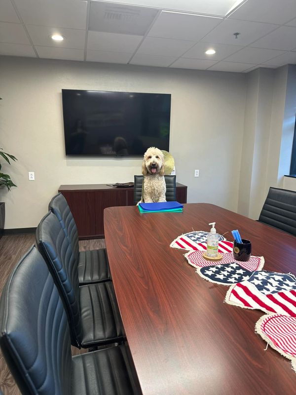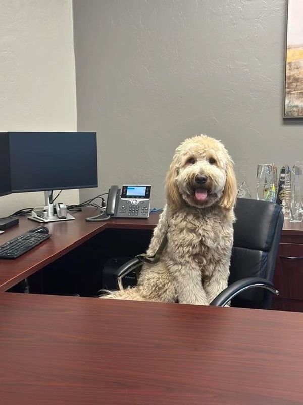 Teddy is the hardest working golden doodle and face of Mach Notary, LLC