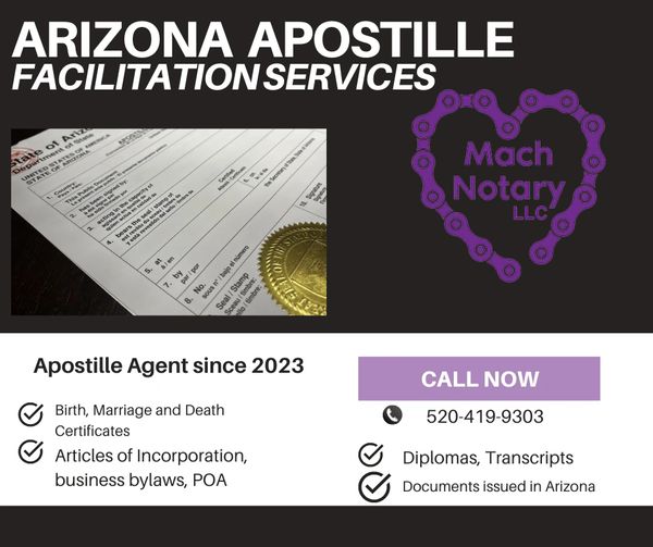 An Apostille or Certificate of Authentication is a special certification used to validate the authority of an Arizona Notary Public, Court Clerk, or state official for use in a foreign country. These certifications follow international standards established by the Hague Convention, ensuring that documents can be legally recognized across borders.